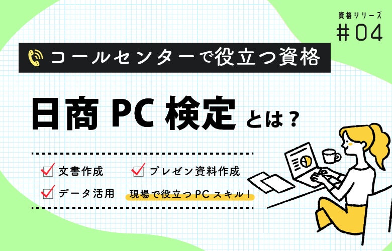 更新日:2025.09.29コールセンター , 秘書代行 , 電話代行日商PC検定は、ビジネスで役立つパソコン・ITの知識やスキルを学べる資格です。パソコン・IT関係の専門知識・スキルが向上すれば、コールセンター業務でも活かせるでしょう。これからコールセンターで働きたい・スキルアップしたいといった思いがある場合、日商PC検定の資格取得はおすすめと考えられます。コールセンターでのキャリアをお考えの方は、ぜひこの記事を参考にしながら、弊社のコールセンター求人にもお気軽にお問い合わせください。