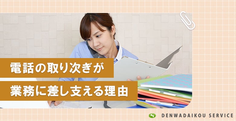 電話の取り次ぎが業務に差し支える主な要因は、従業員が着信を受けてから電話の用件を担当者へ連絡するまで仕事の手が止まるためです。ビジネスの場では、多くの従業員が、各自の担当業務に加えて電話の応対・取り次ぎも担当しています。着信を受けた時、応対者は業務を中断して担当者へ取り次ぐことになるため、作業効率がよくないと指摘する声は多く聞かれます。