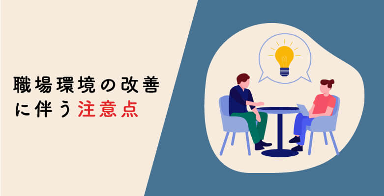 企業が職場の風通しを良くする際、仕事への緊張感が必要以上に薄れる状況などには注意が必要です。また、施策を無理強いすると、従業員は苦痛に感じるかもしれません。以下では、職場環境の改善に伴う注意点をご紹介します